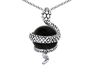 The stunning Original Star K(tm) Large Snake Pendant with 10mm Simulated Black Onyx Ball, crafted in 925 Sterling Silver. This amazing design is mounted with 1 stone prong set black Round Ball Simulated Black Onyx clean clarity. This style measures 0.65 Inches wide, 1.25 Inches long. Designer: Star K - This beautiful design, is part of the exclusive Star K. jewelry collection. Star K. designs are copyrighted, so please be aware of cheap imitations selling online. Only original Star K. creations are made using the highest quality materials and craftsmanship, backed by an exclusive Lifetime Warranty. Warranty: - This item is covered by Finejewelers exclusive Silver Shield Lifetime Warranty. This exclusive lifetime coverage is offered ONLY by Finejewelers so please shop with confidence, our quality is guaranteed for life!
