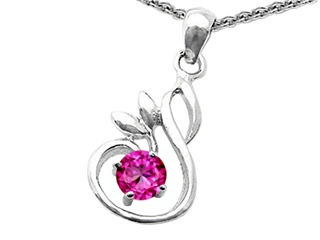 The attractive Original Star K(tm) Round Created Pink Sapphire Swan Pendant, crafted in 925 Sterling Silver. This attractive design is set with 1 stone prong set pink Round Created Pink Sapphire. This design measures 11.00 mm wide, 25.00 mm long. Sapphire is September Birthstone: From the Latin 'sapphirus' meaning 'blue'. A symbol for truth and sincerity, it inspires spiritual enlightenment, health and inner peace. Free 18 inches Sterling Silver Chain included Designer: Star K - This beautiful design, is part of the exclusive Star K. jewelry collection. Star K. designs are copyrighted, so please be aware of cheap imitations selling online. Only original Star K. creations are made using the highest quality materials and craftsmanship, backed by an exclusive Lifetime Warranty. Warranty: - This item is covered by Finejewelers exclusive Silver Shield Lifetime Warranty. This exclusive lifetime coverage is offered ONLY by Finejewelers so please shop with confidence, our quality is guaranteed for life!