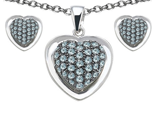 This attractive Original Star K(tm) Simulated Aquamarine Heart Shape Love Pendant Box Set with matching earrings, crafted in 925 Sterling Silver. This amazing design is mounted with 82 stones prong set faint blue Round Simulated Aquamarine. This product measures 16.00 mm wide, 24.00 mm long. Aquamarine is March Birthstone: From the latin `aqua` and `mare` meaning 'sea water'. Aquamarine is said to provide everlasting youth, courage, and happiness. Free 18 inches chain included Designer: Star K - This beautiful design, is part of the exclusive Star K. jewelry collection. Star K. designs are copyrighted, so please be aware of cheap imitations selling online. Only original Star K. creations are made using the highest quality materials and craftsmanship, backed by an exclusive Lifetime Warranty. Warranty: - This item is covered by Finejewelers exclusive Silver Shield Lifetime Warranty. This exclusive lifetime coverage is offered ONLY by Finejewelers so please shop with confidence, our quality is guaranteed for life!