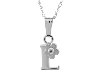 925 Sterling Silver Childrens Letter "L" Charm Pendant with Diamond on 14 Inch Chain