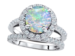The stunning Original Star K(tm) 8mm Round Created Opal Engagement Wedding Set, crafted in 925 Sterling Silver. This amazing design is mounted with 1 stone prong set white iridescent Round Created Opal, 43 stones channel set colorless Round Brilliant Cubic Zirconia. This design measures 11.50 mm wide, 11.50 mm long. Opal is October Birthstone: From the Greek 'opallios', meaning 'colour change'. A symbol of hope and faithfulness, it inspires true love and brings confidence. Designer: Star K - This beautiful design, is part of the exclusive Star K. jewelry collection. Star K. designs are copyrighted, so please be aware of cheap imitations selling online. Only original Star K. creations are made using the highest quality materials and craftsmanship, backed by an exclusive Lifetime Warranty. Warranty: - This item is covered by Finejewelers exclusive Silver Shield Lifetime Warranty. This exclusive lifetime coverage is offered ONLY by Finejewelers so please shop with confidence, our quality is guaranteed for life!