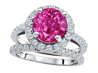 The alluring Original Star K(tm) 8mm Round Created Pink Sapphire Engagement Wedding Set, crafted in 925 Sterling Silver. This attractive design is set with 1 stone prong set pink Round Created Pink Sapphire, 43 stones channel set colorless Round Brilliant Cubic Zirconia. This design measures 11.50 mm wide, 11.50 mm long. Sapphire is September Birthstone: From the Latin 'sapphirus' meaning 'blue'. A symbol for truth and sincerity, it inspires spiritual enlightenment, health and inner peace. Designer: Star K - This beautiful design, is part of the exclusive Star K. jewelry collection. Star K. designs are copyrighted, so please be aware of cheap imitations selling online. Only original Star K. creations are made using the highest quality materials and craftsmanship, backed by an exclusive Lifetime Warranty. Warranty: - This item is covered by Finejewelers exclusive Silver Shield Lifetime Warranty. This exclusive lifetime coverage is offered ONLY by Finejewelers so please shop with confidence, our quality is guaranteed for life!