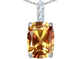 The impressive Original Star K(tm) Large 14x10mm Cushion Cut Simulated Imperial Yellow Topaz Pendant, crafted in 925 Sterling Silver. This attractive design is set with 1 stone prong set brown-yellow Cushion Cut Simulated Imperial YellowTopaz, 3 stones prong set colorless Round Cubic Zirconia. This style measures 10.00 mm wide, 23.00 mm long. Free 18 inches Sterling Silver Chain included Designer: Star K - This beautiful design, is part of the exclusive Star K. jewelry collection. Star K. designs are copyrighted, so please be aware of cheap imitations selling online. Only original Star K. creations are made using the highest quality materials and craftsmanship, backed by an exclusive Lifetime Warranty. Warranty: - This item is covered by Finejewelers exclusive Silver Shield Lifetime Warranty. This exclusive lifetime coverage is offered ONLY by Finejewelers so please shop with confidence, our quality is guaranteed for life!