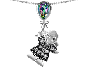 This attractive Original Star K(tm) Little Girl Holding a Balloon Mother Birthstone 9x7mm Pear Shape Rainbow Mystic Topaz Pendant, crafted in 925 Sterling Silver. This amazing design is set with 1 stone prong set multicolor Pear Shape Mystic Topaz. This style measures 18.00 mm wide, 36.00 mm long. Free 18 inches Sterling Silver Chain included Designer: Star K - This beautiful design, is part of the exclusive Star K. jewelry collection. Star K. designs are copyrighted, so please be aware of cheap imitations selling online. Only original Star K. creations are made using the highest quality materials and craftsmanship, backed by an exclusive Lifetime Warranty. Warranty: - This item is covered by Finejewelers exclusive Silver Shield Lifetime Warranty. This exclusive lifetime coverage is offered ONLY by Finejewelers so please shop with confidence, our quality is guaranteed for life!