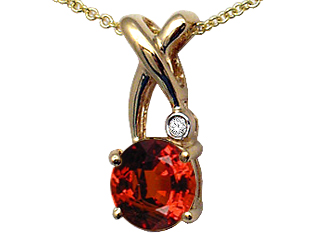 This beautiful Tommaso Design(tm) X Shape Designer Inspired Pendant with Diamond and Checkerboard Cut Genuine Garnet, available in 14 kt Yellow Gold and 14 kt White Gold. This attractive design is set with 1 stone 1.40 carats prong set red-brown Round Garnet, 1 stone 0.01 carats burnish Round Diamond K color I3 clarity. This design measures 7.00 mm wide, 16.00 mm long. Garnet is January Birthstone: From the Latin word 'granatus', the seeds of a pomegranate fruit. A symbol of fidelity, Garnet's powers include healing, strength, protection. Diamond is April Birthstone: From the Greek 'adamas' meaning 'invincible'. A symbol of enduring love, it is believed to bring the wearer luck and success. Free 18 inches chain included Designer: Tommaso design Studio - This classic design, is made by the renowned Tommaso Design Studio. Tommaso creations are copyrighted, so please be aware of cheap imitations selling online. Only original Tommaso designs are made using the highest quality materials and craftsmanship, backed by an exclusive Lifetime Warranty. Warranty: - This item is covered by Finejewelers exclusive Silver Shield Lifetime Warranty. This exclusive lifetime coverage is offered ONLY by Finejewelers so please shop with confidence, our quality is guaranteed for life!. Metal Available: 14 kt Yellow Gold, 14 kt White Gold.