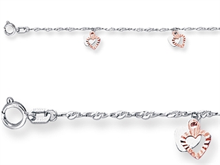 The amazing 10 Inches 7 Double Hearts Adjustable Ankle Bracelet, crafted in 14 kt White Gold. This design measures 10.00 Inches long. Warranty: - This item is covered by Finejewelers exclusive Silver Shield Lifetime Warranty. This exclusive lifetime coverage is offered ONLY by Finejewelers so please shop with confidence, our quality is guaranteed for life!
