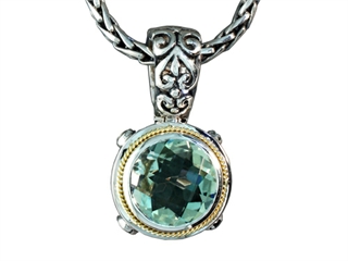 This dazzling Balissima By Effy Collection Sterling Silver and 18k Yellow Gold Green Amethyst Pendant Necklace, crafted in 925 Silver and 18k Yellow Gold. This attractive design is set with 1 stone 4.50 carats bezel set green Round Green Amethyst clean clarity Amethyst is February Birthstone: From the Greek 'amethystos' meaning 'sober'. A symbol of trust, Amethyst is thought to protect against seduction and provide peace. Warranty: - This item is covered by Finejewelers exclusive Silver Shield Lifetime Warranty. This exclusive lifetime coverage is offered ONLY by Finejewelers so please shop with confidence, our quality is guaranteed for life!