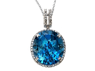 This dazzling Genuine Blue Topaz Pendant by Effy Collection(r), crafted in 14 kt White Gold. This attractive design is set with 1 stone 14.73 carats prong set blue Oval Blue Topaz clean clarity, 0.35 carats prong set Round Brilliant Diamond other-color color I2-I3 clarity. This style measures 10.00 mm high, 16.50 mm wide and 18.00 mm long. Blue Topaz is December Birthstone: From the Greek 'topazos' meaning 'to seek'. Topaz is said to enhance spiritual potential, intelligence, creativity and wealth. Diamond is April Birthstone: From the Greek 'adamas' meaning 'invincible'. A symbol of enduring love, it is believed to bring the wearer luck and success. Free 18 inches gold chain included Warranty: - This item is covered by Finejewelers exclusive Silver Shield Lifetime Warranty. This exclusive lifetime coverage is offered ONLY by Finejewelers so please shop with confidence, our quality is guaranteed for life!