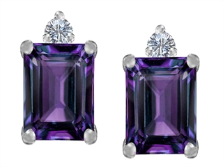 The impressive Original Star K(tm) 8x6mm Emerald Octagon Cut Simulated Alexandrite Earring Studs, crafted in 925 Sterling Silver. This beautiful design is mounted with 2 stones prong set color change Emerald Cut Simulated Alexandrite, 2 stones prong set colorless Round Brilliant Cubic Zirconia. This product measures 7.00 mm wide, 11.00 mm long. Alexandrite is June Birthstone: Named after Czar Alexander II of Russia, this very rare gem has the ability to change color. A symbol for change, Alexandrite is said to inspire imagination, creativity and confidence. Designer: Star K - This beautiful design, is part of the exclusive Star K. jewelry collection. Star K. designs are copyrighted, so please be aware of cheap imitations selling online. Only original Star K. creations are made using the highest quality materials and craftsmanship, backed by an exclusive Lifetime Warranty. Warranty: - This item is covered by Finejewelers exclusive Silver Shield Lifetime Warranty. This exclusive lifetime coverage is offered ONLY by Finejewelers so please shop with confidence, our quality is guaranteed for life!