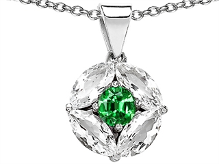 This dazzling Original Star K(tm) Round Simulated Emerald Pendant, crafted in 925 Sterling Silver. This amazing design is mounted with 1 stone prong set green Round Simulated emerald, 4 stones prong set colorless Marquise Cubic Zirconia. This product measures 16.00 mm wide, 25.00 mm long. Emerald is May Birthstone: From the French 'esmeralde' meaning 'green gem'. A symbol of immortality, it is said to improve memory, wisdom and intuition. Free 18 inches chain included Designer: Star K - This beautiful design, is part of the exclusive Star K. jewelry collection. Star K. designs are copyrighted, so please be aware of cheap imitations selling online. Only original Star K. creations are made using the highest quality materials and craftsmanship, backed by an exclusive Lifetime Warranty. Warranty: - This item is covered by Finejewelers exclusive Silver Shield Lifetime Warranty. This exclusive lifetime coverage is offered ONLY by Finejewelers so please shop with confidence, our quality is guaranteed for life!