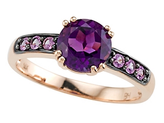 Amethyst Ring crafted in 14 kt Rose Gold Stone Information: 1 Stone 1.54 Carats Amethyst, 6 Stones 0.15 Carats Pink Sapphire in a black rhodium accent.