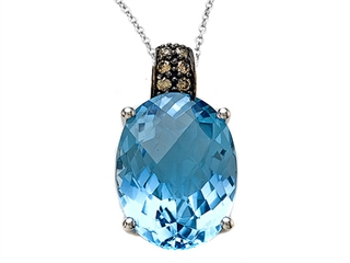 The beautiful Genuine Blue Topaz Pendant by Effy Collection(r), crafted in 14 kt White Gold. This beautiful design is mounted with 1 stone 10.64 carats prong set blue Oval Blue Topaz eye clean clarity, 16 stones 0.09 carats prong set Round Brilliant Diamond Brown color I2-I3 clarity. This product measures 8.00 mm high, 12.00 mm wide and 16.00 mm long. Blue Topaz is December Birthstone: From the Greek 'topazos' meaning 'to seek'. Topaz is said to enhance spiritual potential, intelligence, creativity and wealth. Diamond is April Birthstone: From the Greek 'adamas' meaning 'invincible'. A symbol of enduring love, it is believed to bring the wearer luck and success. Free 18 inches Yellow Gold Wheat Chain included Warranty: - This item is covered by Finejewelers exclusive Silver Shield Lifetime Warranty. This exclusive lifetime coverage is offered ONLY by Finejewelers so please shop with confidence, our quality is guaranteed for life!