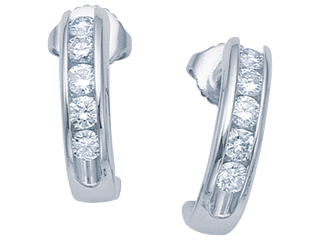 This impressive Karina B(tm) Round Diamonds Earrings, available in 18 kt Yellow Gold and 18 kt White Gold. This attractive design is mounted with 10 stones 0.60 carats channel set Round Brilliant Diamond G color VS1 - VS2 clarity. This product measures 3.90 mm wide. Diamond is April Birthstone: From the Greek 'adamas' meaning 'invincible'. A symbol of enduring love, it is believed to bring the wearer luck and success. Made in USA Designer: Karina B - Classic style, elegant design and perfect craftsmanship. This is the inspiration behind Karina B. Each design we create is produced with the latest technological advancements in computers and machinery. Every piece of jewelry manufactured is done from scratch according to the exact specifications of the design and stone sizes. Each precious stone is set with the guidance of a master stone setter, using the equipment that was not available in the past, to precise measurements of a hundredth of a millimeter. Combining our manufacturing techniques with high quality diamonds and precious stones along with Platinum or 18 KT gold gives you, the educated consumer, an exceptional masterpiece. If you are lucky enough to own a piece by Karina B., wear it with the confidence and pride of knowing that there is nothing made better. Warranty: - This item is covered by Finejewelers exclusive Silver Shield Lifetime Warranty. This exclusive lifetime coverage is offered ONLY by Finejewelers so please shop with confidence, our quality is guaranteed for life!. Metal Available: 18 kt Yellow Gold, 18 kt White Gold.