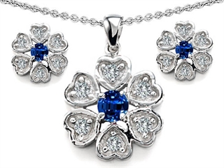 This alluring Original Star K(tm) Created Sapphire Flower Pendant Box Set With Matching Earrings, crafted in 925 Sterling Silver. This amazing design is mounted with 3 stones prong set blue Round Created Sapphire, 18 stones prong set colorless Round Cubic Zirconia. This style measures 13.50 mm wide, 21.00 mm long. Sapphire is September Birthstone: From the Latin 'sapphirus' meaning 'blue'. A symbol for truth and sincerity, it inspires spiritual enlightenment, health and inner peace. Free 18 inches chain included Designer: Star K - This beautiful design, is part of the exclusive Star K. jewelry collection. Star K. designs are copyrighted, so please be aware of cheap imitations selling online. Only original Star K. creations are made using the highest quality materials and craftsmanship, backed by an exclusive Lifetime Warranty. Warranty: - This item is covered by Finejewelers exclusive Silver Shield Lifetime Warranty. This exclusive lifetime coverage is offered ONLY by Finejewelers so please shop with confidence, our quality is guaranteed for life!