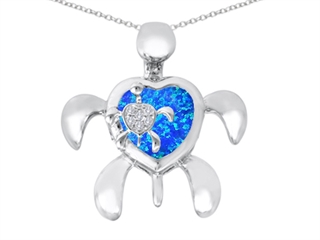 This attractive Original Star K(tm) Good Luck Mother and Child Turtle Pendant with Heart Shape Created Blue Opal, crafted in 925 Sterling Silver. This amazing design is mounted with 1 stone bezel set blue green iridescent Heart Shape Created Blue Opal clean clarity, 6 stones prong set colorless Round Brilliant Cubic Zirconia. This product measures 22.00 mm wide, 22.00 mm long. Free 18 inches Sterling Silver Chain included Designer: Star K - This beautiful design, is part of the exclusive Star K. jewelry collection. Star K. designs are copyrighted, so please be aware of cheap imitations selling online. Only original Star K. creations are made using the highest quality materials and craftsmanship, backed by an exclusive Lifetime Warranty. Warranty: - This item is covered by Finejewelers exclusive Silver Shield Lifetime Warranty. This exclusive lifetime coverage is offered ONLY by Finejewelers so please shop with confidence, our quality is guaranteed for life!