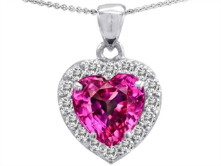 The attractive Original Star K(tm) Heart Shape 8mm Created Pink Sapphire Pendant, crafted in 925 Sterling Silver. This beautiful design is mounted with 1 stone prong set pink Heart Shape Created Pink Sapphire, 16 stones prong set colorless Round Brilliant Cubic Zirconia. This style measures 12.00 mm wide, 18.00 mm long. Sapphire is September Birthstone: From the Latin 'sapphirus' meaning 'blue'. A symbol for truth and sincerity, it inspires spiritual enlightenment, health and inner peace. Free 18 inches chain included Designer: Star K - This beautiful design, is part of the exclusive Star K. jewelry collection. Star K. designs are copyrighted, so please be aware of cheap imitations selling online. Only original Star K. creations are made using the highest quality materials and craftsmanship, backed by an exclusive Lifetime Warranty. Warranty: - This item is covered by Finejewelers exclusive Silver Shield Lifetime Warranty. This exclusive lifetime coverage is offered ONLY by Finejewelers so please shop with confidence, our quality is guaranteed for life!