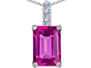 The stunning Original Star K(tm) Large 14x10mm Emerald Cut Created Pink Sapphire Pendant, crafted in 925 Sterling Silver. This amazing design is mounted with 1 stone prong set pink Emerald Cut Created Pink Sapphire, 3 stones prong set colorless Round Cubic Zirconia. This design measures 10.00 mm wide, 23.00 mm long. Sapphire is September Birthstone: From the Latin 'sapphirus' meaning 'blue'. A symbol for truth and sincerity, it inspires spiritual enlightenment, health and inner peace. Free 18 inches Sterling Silver Chain included Designer: Star K - This beautiful design, is part of the exclusive Star K. jewelry collection. Star K. designs are copyrighted, so please be aware of cheap imitations selling online. Only original Star K. creations are made using the highest quality materials and craftsmanship, backed by an exclusive Lifetime Warranty. Warranty: - This item is covered by Finejewelers exclusive Silver Shield Lifetime Warranty. This exclusive lifetime coverage is offered ONLY by Finejewelers so please shop with confidence, our quality is guaranteed for life!