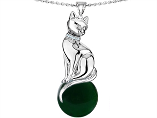 The stunning Original Star K(tm) Large Cat Pendant with 10mm Simulated Emerald Ball, crafted in 925 Sterling Silver. This beautiful design is mounted with 1 stone prong set green Round Ball Simulated Emerald clean clarity. This design measures 0.60 Inches wide, 2.00 Inches long. Emerald is May Birthstone: From the French 'esmeralde' meaning 'green gem'. A symbol of immortality, it is said to improve memory, wisdom and intuition. Designer: Star K - This beautiful design, is part of the exclusive Star K. jewelry collection. Star K. designs are copyrighted, so please be aware of cheap imitations selling online. Only original Star K. creations are made using the highest quality materials and craftsmanship, backed by an exclusive Lifetime Warranty. Warranty: - This item is covered by Finejewelers exclusive Silver Shield Lifetime Warranty. This exclusive lifetime coverage is offered ONLY by Finejewelers so please shop with confidence, our quality is guaranteed for life!