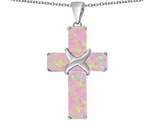This impressing Original Star K(tm) Large Christian Cross Pendant with Emerald Cut Created Pink Opal Stones, crafted in 925 Sterling Silver. This amazing design is mounted with 1 stone prong set pink iridesent Emerald Cut Created Pink Opal clean clarity, 1 stone prong set pink iridesent Emerald Cut Created Pink Opal clean clarity, 1 stone prong set pink iridesent Emerald Cut Created Pink Opal clean clarity. This style measures 20.00 mm wide, 38.00 mm long. Opal is October Birthstone: From the Greek 'opallios', meaning 'colour change'. A symbol of hope and faithfulness, it inspires true love and brings confidence. Free 18 inches Sterling Silver Chain included Designer: Star K - This beautiful design, is part of the exclusive Star K. jewelry collection. Star K. designs are copyrighted, so please be aware of cheap imitations selling online. Only original Star K. creations are made using the highest quality materials and craftsmanship, backed by an exclusive Lifetime Warranty. Warranty: - This item is covered by Finejewelers exclusive Silver Shield Lifetime Warranty. This exclusive lifetime coverage is offered ONLY by Finejewelers so please shop with confidence, our quality is guaranteed for life!