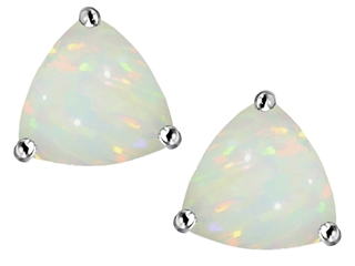 This delightful Original Star K(tm) Trillion 7mm Created Opal Earring Studs, crafted in 925 Sterling Silver. This amazing design is mounted with 2 stones prong set white iridescent Trillion Created Opal. This style measures 7.00 mm wide, 7.00 mm long. Opal is October Birthstone: From the Greek 'opallios', meaning 'colour change'. A symbol of hope and faithfulness, it inspires true love and brings confidence. Designer: Star K - This beautiful design, is part of the exclusive Star K. jewelry collection. Star K. designs are copyrighted, so please be aware of cheap imitations selling online. Only original Star K. creations are made using the highest quality materials and craftsmanship, backed by an exclusive Lifetime Warranty. Warranty: - This item is covered by Finejewelers exclusive Silver Shield Lifetime Warranty. This exclusive lifetime coverage is offered ONLY by Finejewelers so please shop with confidence, our quality is guaranteed for life!