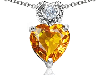 This impressive Tommaso Design(tm) 8mm Heart Shape Genuine Citrine and Diamond Pendant, crafted in 14 kt White Gold. This amazing design is set with 1 stone 1.20 carats prong set medium to dark yellow-orange Heart Shape Citrine, 1 stone 0.03 carats prong set Round Brilliant Diamond K color I3 clarity. This design measures 8.00 mm wide, 12.00 mm long. Citrine is November Birthstone: From the French 'citron' for 'lemon'. A symbol of success, is said to protect against sudden death and increase success and prosperity. Diamond is April Birthstone: From the Greek 'adamas' meaning 'invincible'. A symbol of enduring love, it is believed to bring the wearer luck and success. Free 18 inches chain included Designer: Tommaso design Studio - This classic design, is made by the renowned Tommaso Design Studio. Tommaso creations are copyrighted, so please be aware of cheap imitations selling online. Only original Tommaso designs are made using the highest quality materials and craftsmanship, backed by an exclusive Lifetime Warranty. Warranty: - This item is covered by Finejewelers exclusive Silver Shield Lifetime Warranty. This exclusive lifetime coverage is offered ONLY by Finejewelers so please shop with confidence, our quality is guaranteed for life!