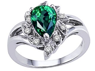 The alluring Tommaso Design(tm) Pear Shape 8x6 mm Simulated Emerald and Genuine Diamond Ring, available in 14 kt Yellow Gold and 14 kt White Gold. This attractive design is mounted with 1 stone prong set green Pear Shape Simulated Emerald, 9 stones prong set Round Brilliant Diamond K color I3 clarity. This design measures 8.00 mm wide, 10.00 mm long. Emerald is May Birthstone: From the French 'esmeralde' meaning 'green gem'. A symbol of immortality, it is said to improve memory, wisdom and intuition. Diamond is April Birthstone: From the Greek 'adamas' meaning 'invincible'. A symbol of enduring love, it is believed to bring the wearer luck and success. Designer: Tommaso design Studio - This classic design, is made by the renowned Tommaso Design Studio. Tommaso creations are copyrighted, so please be aware of cheap imitations selling online. Only original Tommaso designs are made using the highest quality materials and craftsmanship, backed by an exclusive Lifetime Warranty. Warranty: - This item is covered by Finejewelers exclusive Silver Shield Lifetime Warranty. This exclusive lifetime coverage is offered ONLY by Finejewelers so please shop with confidence, our quality is guaranteed for life!. Metal Available: 14 kt Yellow Gold, 14 kt White Gold.
