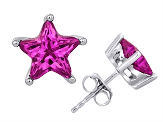 This impressing Original Star K(tm) Fancy Star Cut Earring Studs with Created Pink Sapphire, crafted in 925 Sterling Silver. This amazing design is mounted with 2 stones prong set pink Star Shape Created Pink Sapphire clean clarity. This style measures 8.00 mm wide, 8.00 mm long. Sapphire is September Birthstone: From the Latin 'sapphirus' meaning 'blue'. A symbol for truth and sincerity, it inspires spiritual enlightenment, health and inner peace. Designer: Star K - This beautiful design, is part of the exclusive Star K. jewelry collection. Star K. designs are copyrighted, so please be aware of cheap imitations selling online. Only original Star K. creations are made using the highest quality materials and craftsmanship, backed by an exclusive Lifetime Warranty. Warranty: - This item is covered by Finejewelers exclusive Silver Shield Lifetime Warranty. This exclusive lifetime coverage is offered ONLY by Finejewelers so please shop with confidence, our quality is guaranteed for life!