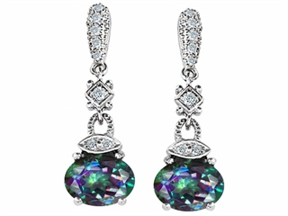 The alluring Original Star K(tm) Genuine Mystic Topaz 1.50 Inch Hanging Drop Earrings, crafted in 925 Sterling Silver. This attractive design is set with 2 stones 6.00 carats prong set multicolor Oval Mystic Topaz clean clarity, 14 stones 0.02 carats bezel set colorless Round Brilliant Cubic Zirconia, 14 stones 0.02 carats prong set colorless Round Brilliant Cubic Zirconia. This product measures 10.00 mm wide, 35.00 mm long. Designer: Star K - This beautiful design, is part of the exclusive Star K. jewelry collection. Star K. designs are copyrighted, so please be aware of cheap imitations selling online. Only original Star K. creations are made using the highest quality materials and craftsmanship, backed by an exclusive Lifetime Warranty. Warranty: - This item is covered by Finejewelers exclusive Silver Shield Lifetime Warranty. This exclusive lifetime coverage is offered ONLY by Finejewelers so please shop with confidence, our quality is guaranteed for life!