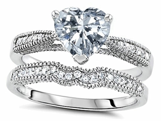This amazing Original Star K(tm) Heart Shape 7mm Genuine White Topaz Engagement Wedding Set, crafted in 925 Sterling Silver. This attractive design is mounted with 1 stone prong set colorless Heart Shape White Topaz, 30 stones prong set colorless Round Brilliant Cubic Zirconia. This product measures 7.00 mm wide, 7.00 mm long. Designer: Star K - This beautiful design, is part of the exclusive Star K. jewelry collection. Star K. designs are copyrighted, so please be aware of cheap imitations selling online. Only original Star K. creations are made using the highest quality materials and craftsmanship, backed by an exclusive Lifetime Warranty. Warranty: - This item is covered by Finejewelers exclusive Silver Shield Lifetime Warranty. This exclusive lifetime coverage is offered ONLY by Finejewelers so please shop with confidence, our quality is guaranteed for life!