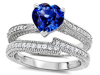 The amazing Original Star K(tm) Heart Shape 7mm Created Sapphire Engagement Wedding Set, crafted in 925 Sterling Silver. This attractive design is set with 1 stone prong set blue Heart Shape Created Sapphire, 38 stones prong set colorless Round Brilliant Cubic Zirconia. This style measures 7.00 mm wide, 7.00 mm long. Sapphire is September Birthstone: From the Latin 'sapphirus' meaning 'blue'. A symbol for truth and sincerity, it inspires spiritual enlightenment, health and inner peace. Designer: Star K - This beautiful design, is part of the exclusive Star K. jewelry collection. Star K. designs are copyrighted, so please be aware of cheap imitations selling online. Only original Star K. creations are made using the highest quality materials and craftsmanship, backed by an exclusive Lifetime Warranty. Warranty: - This item is covered by Finejewelers exclusive Silver Shield Lifetime Warranty. This exclusive lifetime coverage is offered ONLY by Finejewelers so please shop with confidence, our quality is guaranteed for life!