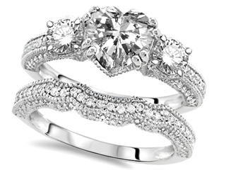 This stunning Original Star K(tm) Heart Shape 7mm Genuine White Topaz Engagement Wedding Set, crafted in 925 Sterling Silver. This beautiful design is set with 1 stone prong set colorless Heart Shape White Topaz, 2 stones prong set colorless Round Brilliant Cubic Zirconia, 58 stones prong set colorless Round Brilliant Cubic Zirconia. This style measures 15.00 mm wide, 7.00 mm long. Designer: Star K - This beautiful design, is part of the exclusive Star K. jewelry collection. Star K. designs are copyrighted, so please be aware of cheap imitations selling online. Only original Star K. creations are made using the highest quality materials and craftsmanship, backed by an exclusive Lifetime Warranty. Warranty: - This item is covered by Finejewelers exclusive Silver Shield Lifetime Warranty. This exclusive lifetime coverage is offered ONLY by Finejewelers so please shop with confidence, our quality is guaranteed for life!