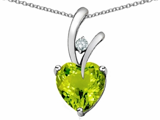 The dazzling Original Star K(tm) Heart Shape 8mm Simulated Peridot Pendant, crafted in 925 Sterling Silver. This amazing design is mounted with 1 stone prong set green-yellow Heart Shape Peridot eye clean clarity, 1 stone prong set colorless Round Cubic Zirconia eye clean clarity. This design measures 8.00 mm wide, 18.00 mm long. Peridot is August Birthstone: From the Greek 'Peridona' for 'giving plenty'. A symbol of the sun, Peridot is thought to bring good luck, peace, protection and success. Free 18 inches chain included Designer: Star K - This beautiful design, is part of the exclusive Star K. jewelry collection. Star K. designs are copyrighted, so please be aware of cheap imitations selling online. Only original Star K. creations are made using the highest quality materials and craftsmanship, backed by an exclusive Lifetime Warranty. Warranty: - This item is covered by Finejewelers exclusive Silver Shield Lifetime Warranty. This exclusive lifetime coverage is offered ONLY by Finejewelers so please shop with confidence, our quality is guaranteed for life!