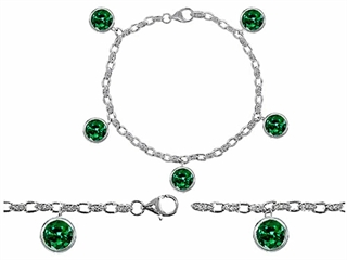 This impressive Original Star K(tm) High End Tennis Charm Bracelet With 5pcs 7mm Round Simulated Emerald, crafted in 925 Sterling Silver. This attractive design is mounted with 5 stones bezel set green Round Simulated Emerald, 79 stones prong set colorless Round Cubic Zirconia. This design measures 0.25 Inches wide, 7.50 Inches long. Emerald is May Birthstone: From the French 'esmeralde' meaning 'green gem'. A symbol of immortality, it is said to improve memory, wisdom and intuition. Designer: Star K - This beautiful design, is part of the exclusive Star K. jewelry collection. Star K. designs are copyrighted, so please be aware of cheap imitations selling online. Only original Star K. creations are made using the highest quality materials and craftsmanship, backed by an exclusive Lifetime Warranty. Warranty: - This item is covered by Finejewelers exclusive Silver Shield Lifetime Warranty. This exclusive lifetime coverage is offered ONLY by Finejewelers so please shop with confidence, our quality is guaranteed for life!