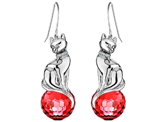 The impressive Original Star K(tm) Large Cat Hanging Hook Earrings with 10mm Simulated Ruby Ball, crafted in 925 Sterling Silver. This amazing design is set with 2 stones prong set red Round Ball Simulated Ruby clean clarity. This product measures 0.40 Inches wide, 1.50 Inches long. Ruby is July Birthstone: From the Latin 'ruber' meaning 'red'. King of gems and a symbol of royalty, it is said to inspire love, passion, confidence and leadership. Designer: Star K - This beautiful design, is part of the exclusive Star K. jewelry collection. Star K. designs are copyrighted, so please be aware of cheap imitations selling online. Only original Star K. creations are made using the highest quality materials and craftsmanship, backed by an exclusive Lifetime Warranty. Warranty: - This item is covered by Finejewelers exclusive Silver Shield Lifetime Warranty. This exclusive lifetime coverage is offered ONLY by Finejewelers so please shop with confidence, our quality is guaranteed for life!