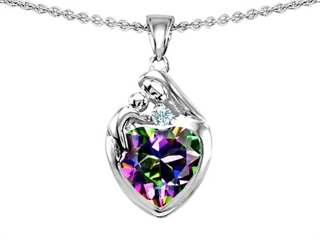 The dazzling Original Star K(tm) Loving Mother With Child Family Pendant With 8mm Heart Shape Rainbow Mystic Topaz, crafted in 925 Sterling Silver. This beautiful design is set with 1 stone bezel set multicolor Heart Shape Mystic Topaz clean clarity, 1 stone bezel set colorless Round Cubic Zirconia clean clarity. This style measures 11.00 mm wide, 22.00 mm long. Free 18 inches chain included Designer: Star K - This beautiful design, is part of the exclusive Star K. jewelry collection. Star K. designs are copyrighted, so please be aware of cheap imitations selling online. Only original Star K. creations are made using the highest quality materials and craftsmanship, backed by an exclusive Lifetime Warranty. Warranty: - This item is covered by Finejewelers exclusive Silver Shield Lifetime Warranty. This exclusive lifetime coverage is offered ONLY by Finejewelers so please shop with confidence, our quality is guaranteed for life!