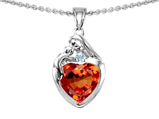 The attractive Original Star K(tm) Loving Mother With Child Family Pendant With 8mm Heart Shape Simulated Orange Mexican Fire Opal, crafted in 925 Sterling Silver. This amazing design is mounted with 1 stone bezel set red - orange Heart Shape Simulated Fire Opal clean clarity, 1 stone bezel set colorless Round Cubic Zirconia clean clarity. This design measures 11.00 mm wide, 22.00 mm long. Free 18 inches chain included Designer: Star K - This beautiful design, is part of the exclusive Star K. jewelry collection. Star K. designs are copyrighted, so please be aware of cheap imitations selling online. Only original Star K. creations are made using the highest quality materials and craftsmanship, backed by an exclusive Lifetime Warranty. Warranty: - This item is covered by Finejewelers exclusive Silver Shield Lifetime Warranty. This exclusive lifetime coverage is offered ONLY by Finejewelers so please shop with confidence, our quality is guaranteed for life!