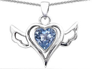This attractive Original Star K(tm) Wings Of Love Pendant with Heart Shape Simulated Aquamarine, crafted in 925 Sterling Silver. This amazing design is mounted with 1 stone prong set faint blue Heart Shape Simulated Aquamarine clean clarity. This product measures 25.00 mm wide, 23.00 mm long. Aquamarine is March Birthstone: From the latin `aqua` and `mare` meaning 'sea water'. Aquamarine is said to provide everlasting youth, courage, and happiness. Free 18 inches Sterling Silver Chain included Designer: Star K - This beautiful design, is part of the exclusive Star K. jewelry collection. Star K. designs are copyrighted, so please be aware of cheap imitations selling online. Only original Star K. creations are made using the highest quality materials and craftsmanship, backed by an exclusive Lifetime Warranty. Warranty: - This item is covered by Finejewelers exclusive Silver Shield Lifetime Warranty. This exclusive lifetime coverage is offered ONLY by Finejewelers so please shop with confidence, our quality is guaranteed for life!