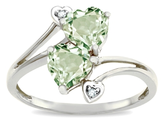 This impressing Tommaso Design(tm) Heart Shape 6 mm Genuine Green Amethyst and Diamond Ring, crafted in 10 kt White Gold. This beautiful design is set with 2 stones 1.00 carats prong set light green Heart Shape Green Amethyst, 2 stones 0.01 carats prong set Round Brilliant Diamond K color I3 clarity. This design measures 8.00 mm wide, 13.00 mm long. Amethyst is February Birthstone: From the Greek 'amethystos' meaning 'sober'. A symbol of trust, Amethyst is thought to protect against seduction and provide peace. Diamond is April Birthstone: From the Greek 'adamas' meaning 'invincible'. A symbol of enduring love, it is believed to bring the wearer luck and success. Designer: Tommaso design Studio - This classic design, is made by the renowned Tommaso Design Studio. Tommaso creations are copyrighted, so please be aware of cheap imitations selling online. Only original Tommaso designs are made using the highest quality materials and craftsmanship, backed by an exclusive Lifetime Warranty. Warranty: - This item is covered by Finejewelers exclusive Silver Shield Lifetime Warranty. This exclusive lifetime coverage is offered ONLY by Finejewelers so please shop with confidence, our quality is guaranteed for life!