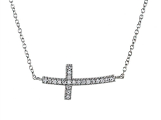 925 Sterling Silver Cubic Zirconia Sidways Cross Pendant on 18 Inch Chain