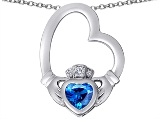 This beautiful Celtic Love By Kelly (tm) Floating Heart Irish Claddagh Pendant with Heart Shape Simulated Blue Topaz, crafted in 925 Sterling Silver. This beautiful design is set with 1 stone bezel set medium to dark blue Heart Shape Simulated Blue Topaz clean clarity, 3 stones prong set colorless Round Brilliant Cubic Zirconia clean clarity. This design measures 21.00 mm wide, 28.00 mm long. Blue Topaz is December Birthstone: From the Greek 'topazos' meaning 'to seek'. Topaz is said to enhance spiritual potential, intelligence, creativity and wealth. Free 18 inches Sterling Silver Chain included Designer: Star K - This beautiful design, is part of the exclusive Star K. jewelry collection. Star K. designs are copyrighted, so please be aware of cheap imitations selling online. Only original Star K. creations are made using the highest quality materials and craftsmanship, backed by an exclusive Lifetime Warranty. Warranty: - This item is covered by Finejewelers exclusive Silver Shield Lifetime Warranty. This exclusive lifetime coverage is offered ONLY by Finejewelers so please shop with confidence, our quality is guaranteed for life!