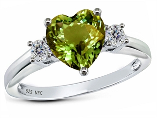 The impressing Original Star K(tm) 8mm Heart Shape Simulated Green Tourmaline Engagement Ring, crafted in 925 Sterling Silver. This attractive design is mounted with 1 stone prong set dark green Heart Shape Simulated Green Tourmaline eye clean clarity, 2 stones prong set colorless Round Cubic Zirconia eye clean clarity. This design measures 8.00 mm wide, 8.00 mm long. Designer: Star K - This beautiful design, is part of the exclusive Star K. jewelry collection. Star K. designs are copyrighted, so please be aware of cheap imitations selling online. Only original Star K. creations are made using the highest quality materials and craftsmanship, backed by an exclusive Lifetime Warranty. Warranty: - This item is covered by Finejewelers exclusive Silver Shield Lifetime Warranty. This exclusive lifetime coverage is offered ONLY by Finejewelers so please shop with confidence, our quality is guaranteed for life!