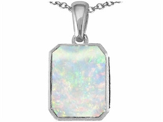 The amazing Original Star K(tm) Emerald Cut 10x8mm Created Opal Pendant, crafted in 925 Sterling Silver. This beautiful design is mounted with 1 stone prong set white iridescent Emerald Cut Created Opal. This design measures 10.00 mm wide, 18.00 mm long. Opal is October Birthstone: From the Greek 'opallios', meaning 'colour change'. A symbol of hope and faithfulness, it inspires true love and brings confidence. Free 18 inches chain included Designer: Star K - This beautiful design, is part of the exclusive Star K. jewelry collection. Star K. designs are copyrighted, so please be aware of cheap imitations selling online. Only original Star K. creations are made using the highest quality materials and craftsmanship, backed by an exclusive Lifetime Warranty. Warranty: - This item is covered by Finejewelers exclusive Silver Shield Lifetime Warranty. This exclusive lifetime coverage is offered ONLY by Finejewelers so please shop with confidence, our quality is guaranteed for life!
