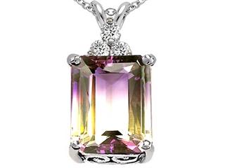 This impressing Original Star K(tm) Genuine Ametrine Pendant, crafted in .925 Sterling Silver. This attractive design is set with 1 stone 23.50 carats prong set violet and yellow Emerald Cut Ametrine clean clarity, 3 stones 0.90 carats prong set colorless Round Brilliant Cubic Zirconia. This style measures 0.50 Inches high, 0.50 Inches wide. Free 18 inches chain included Designer: Star K - This beautiful design, is part of the exclusive Star K. jewelry collection. Star K. designs are copyrighted, so please be aware of cheap imitations selling online. Only original Star K. creations are made using the highest quality materials and craftsmanship, backed by an exclusive Lifetime Warranty. Warranty: - This item is covered by Finejewelers exclusive Silver Shield Lifetime Warranty. This exclusive lifetime coverage is offered ONLY by Finejewelers so please shop with confidence, our quality is guaranteed for life!