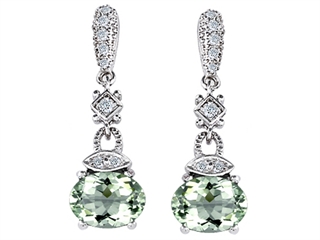 The dazzling Original Star K(tm) Genuine Green Amethyst 1.50 Inch Hanging Drop Earrings, crafted in 925 Sterling Silver. This attractive design is set with 2 stones 6.00 carats prong set light green Oval Green Amethyst clean clarity, 14 stones 0.02 carats bezel set light green Round Brilliant Green Amethyst clean clarity, 14 stones 0.02 carats prong set colorless Round Brilliant Cubic Zirconia. This product measures 10.00 mm wide, 35.00 mm long. Amethyst is February Birthstone: From the Greek 'amethystos' meaning 'sober'. A symbol of trust, Amethyst is thought to protect against seduction and provide peace. Designer: Star K - This beautiful design, is part of the exclusive Star K. jewelry collection. Star K. designs are copyrighted, so please be aware of cheap imitations selling online. Only original Star K. creations are made using the highest quality materials and craftsmanship, backed by an exclusive Lifetime Warranty. Warranty: - This item is covered by Finejewelers exclusive Silver Shield Lifetime Warranty. This exclusive lifetime coverage is offered ONLY by Finejewelers so please shop with confidence, our quality is guaranteed for life!