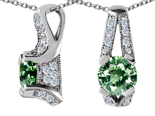The beautiful Original Star K(tm) Round Simulated Green Sapphire Pendant, crafted in 925 Sterling Silver. This attractive design is mounted with 1 stone prong set light green Round Simulated Green Sapphire, 22 stones prong set colorless Round Cubic Zirconia. This design measures 8.00 mm wide, 20.00 mm long. Sapphire is September Birthstone: From the Latin 'sapphirus' meaning 'blue'. A symbol for truth and sincerity, it inspires spiritual enlightenment, health and inner peace. Free 18 inches chain included Designer: Star K - This beautiful design, is part of the exclusive Star K. jewelry collection. Star K. designs are copyrighted, so please be aware of cheap imitations selling online. Only original Star K. creations are made using the highest quality materials and craftsmanship, backed by an exclusive Lifetime Warranty. Warranty: - This item is covered by Finejewelers exclusive Silver Shield Lifetime Warranty. This exclusive lifetime coverage is offered ONLY by Finejewelers so please shop with confidence, our quality is guaranteed for life!