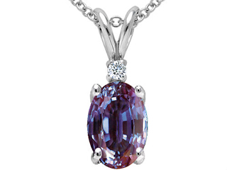 The alluring Tommaso Design(tm) Oval 7x5mm Simulated Alexandrite And Genuine Diamond Pendant, available in 14 kt Yellow Gold and 14 kt White Gold. This amazing design is mounted with 1 stone prong set color change Oval Simulated alexandrite, 1 stone prong set Round Brilliant Diamond K color I3 clarity. This design measures 6.00 mm wide, 15.00 mm long. Alexandrite is June Birthstone: Named after Czar Alexander II of Russia, this very rare gem has the ability to change color. A symbol for change, Alexandrite is said to inspire imagination, creativity and confidence. Diamond is April Birthstone: From the Greek 'adamas' meaning 'invincible'. A symbol of enduring love, it is believed to bring the wearer luck and success. Free 18 inches chain included Designer: Tommaso design Studio - This classic design, is made by the renowned Tommaso Design Studio. Tommaso creations are copyrighted, so please be aware of cheap imitations selling online. Only original Tommaso designs are made using the highest quality materials and craftsmanship, backed by an exclusive Lifetime Warranty. Warranty: - This item is covered by Finejewelers exclusive Silver Shield Lifetime Warranty. This exclusive lifetime coverage is offered ONLY by Finejewelers so please shop with confidence, our quality is guaranteed for life!. Metal Available: 14 kt Yellow Gold, 14 kt White Gold.