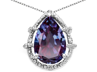 This amazing Tommaso Design(tm) Pear Shape 11x8mm Simulated Alexandrite and Diamond Pendant, crafted in 10 kt White Gold. This amazing design is set with 1 stone prong set color change Pear Shape Simulated Alexandrite, 4 stones prong set Round Brilliant Diamond K color I3 clarity. This design measures 12.00 mm wide, 15.00 mm long. Alexandrite is June Birthstone: Named after Czar Alexander II of Russia, this very rare gem has the ability to change color. A symbol for change, Alexandrite is said to inspire imagination, creativity and confidence. Diamond is April Birthstone: From the Greek 'adamas' meaning 'invincible'. A symbol of enduring love, it is believed to bring the wearer luck and success. Free 18 inches chain included Designer: Tommaso design Studio - This classic design, is made by the renowned Tommaso Design Studio. Tommaso creations are copyrighted, so please be aware of cheap imitations selling online. Only original Tommaso designs are made using the highest quality materials and craftsmanship, backed by an exclusive Lifetime Warranty. Warranty: - This item is covered by Finejewelers exclusive Silver Shield Lifetime Warranty. This exclusive lifetime coverage is offered ONLY by Finejewelers so please shop with confidence, our quality is guaranteed for life!