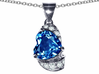 This dazzling Original Star K(tm) Heart Shape 8mm Simulated Blue Topaz Love Pendant, crafted in 925 Sterling Silver. This attractive design is mounted with 1 stone prong set medium to dark blue Heart Shape Simulated Blue Topaz clean clarity, 6 stones prong set colorless Round Brilliant Cubic Zirconia. This style measures 9.00 mm wide, 18.00 mm long. Blue Topaz is December Birthstone: From the Greek 'topazos' meaning 'to seek'. Topaz is said to enhance spiritual potential, intelligence, creativity and wealth. Designer: Star K - This beautiful design, is part of the exclusive Star K. jewelry collection. Star K. designs are copyrighted, so please be aware of cheap imitations selling online. Only original Star K. creations are made using the highest quality materials and craftsmanship, backed by an exclusive Lifetime Warranty. Warranty: - This item is covered by Finejewelers exclusive Silver Shield Lifetime Warranty. This exclusive lifetime coverage is offered ONLY by Finejewelers so please shop with confidence, our quality is guaranteed for life!
