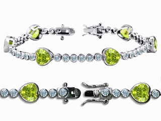 The attractive Original Star K(tm) High End Tennis Bracelet With 6pcs 7mm Genuine Heart Peridot, crafted in 925 Sterling Silver. This beautiful design is set with 6 stones bezel set green-yellow Heart Shape Peridot, 36 stones prong set colorless Round Cubic Zirconia. This product measures 0.28 Inches wide, 7.50 Inches long. Peridot is August Birthstone: From the Greek 'Peridona' for 'giving plenty'. A symbol of the sun, Peridot is thought to bring good luck, peace, protection and success. Designer: Star K - This beautiful design, is part of the exclusive Star K. jewelry collection. Star K. designs are copyrighted, so please be aware of cheap imitations selling online. Only original Star K. creations are made using the highest quality materials and craftsmanship, backed by an exclusive Lifetime Warranty. Warranty: - This item is covered by Finejewelers exclusive Silver Shield Lifetime Warranty. This exclusive lifetime coverage is offered ONLY by Finejewelers so please shop with confidence, our quality is guaranteed for life!