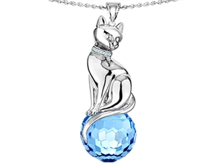This impressive Original Star K(tm) Large Cat Pendant with 10mm Simulated Aquamarine faceted Ball, crafted in 925 Sterling Silver. This amazing design is set with 1 stone prong set faint blue Round Ball Simulated Aquamarine clean clarity. This product measures 0.60 Inches wide, 2.00 Inches long. Aquamarine is March Birthstone: From the latin `aqua` and `mare` meaning 'sea water'. Aquamarine is said to provide everlasting youth, courage, and happiness. Designer: Star K - This beautiful design, is part of the exclusive Star K. jewelry collection. Star K. designs are copyrighted, so please be aware of cheap imitations selling online. Only original Star K. creations are made using the highest quality materials and craftsmanship, backed by an exclusive Lifetime Warranty. Warranty: - This item is covered by Finejewelers exclusive Silver Shield Lifetime Warranty. This exclusive lifetime coverage is offered ONLY by Finejewelers so please shop with confidence, our quality is guaranteed for life!